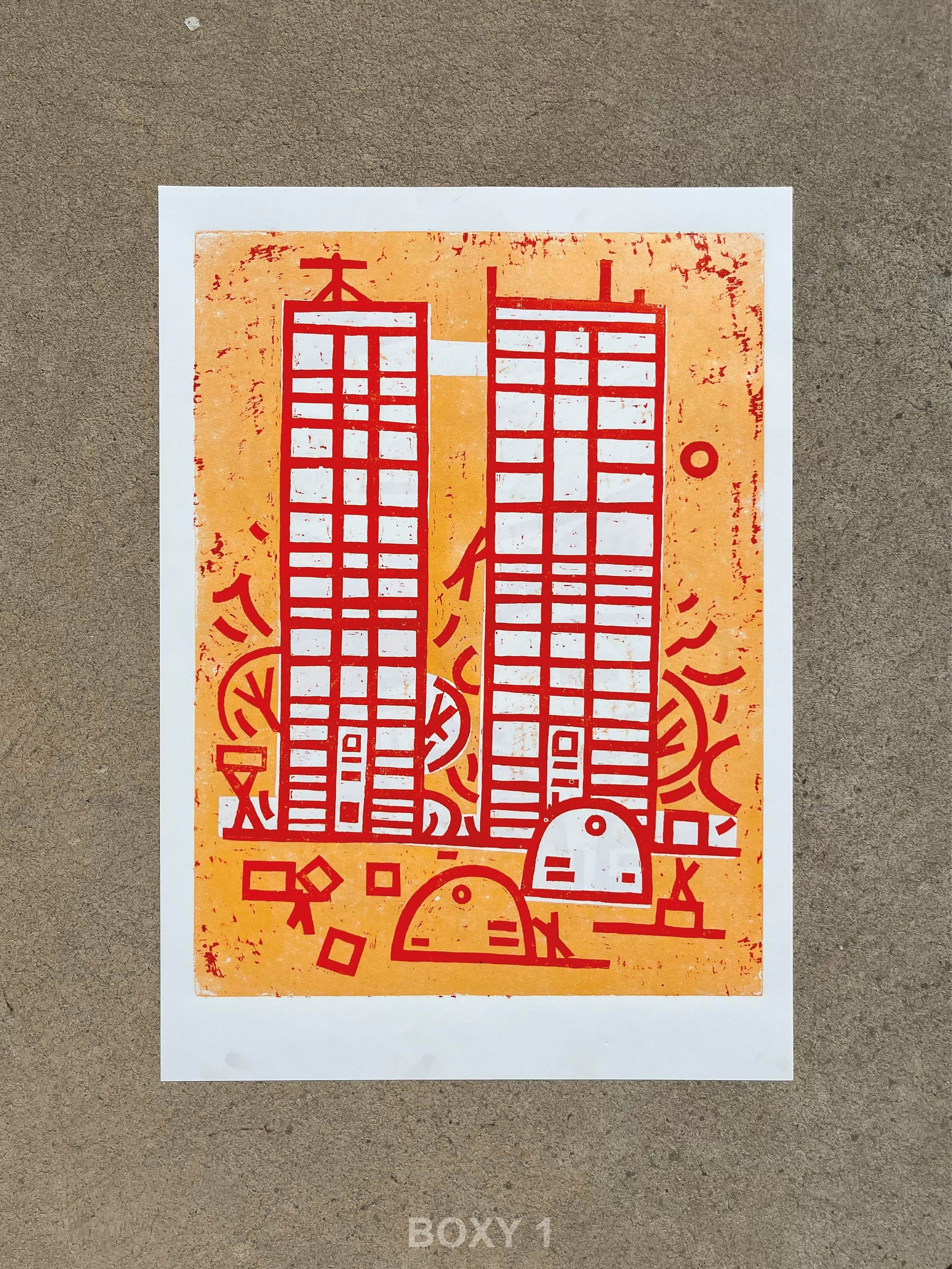 série grafických tisků nesoucí název „24Hrs„ vznikla neřízenou kombinací matric a barev = výsledkem je 64 variant tisků, co kus to jedinečná varianta, která existuje pouze v 1ks