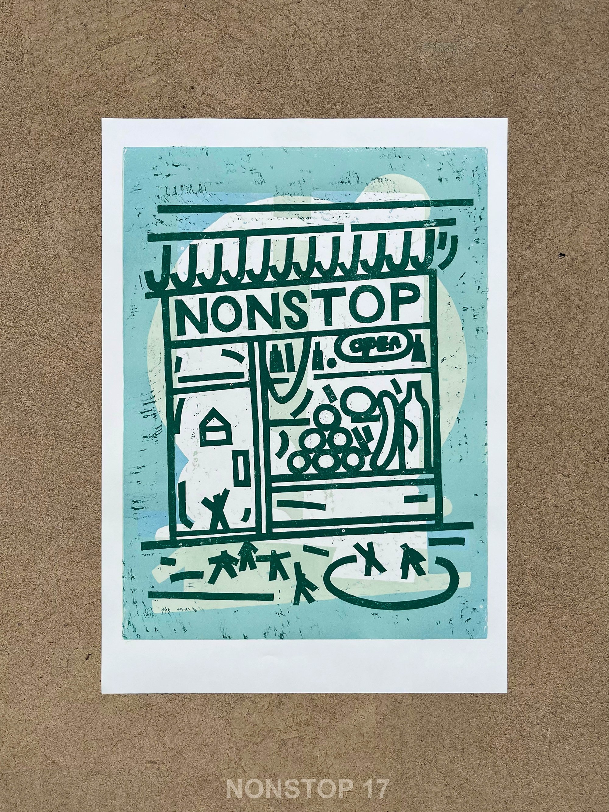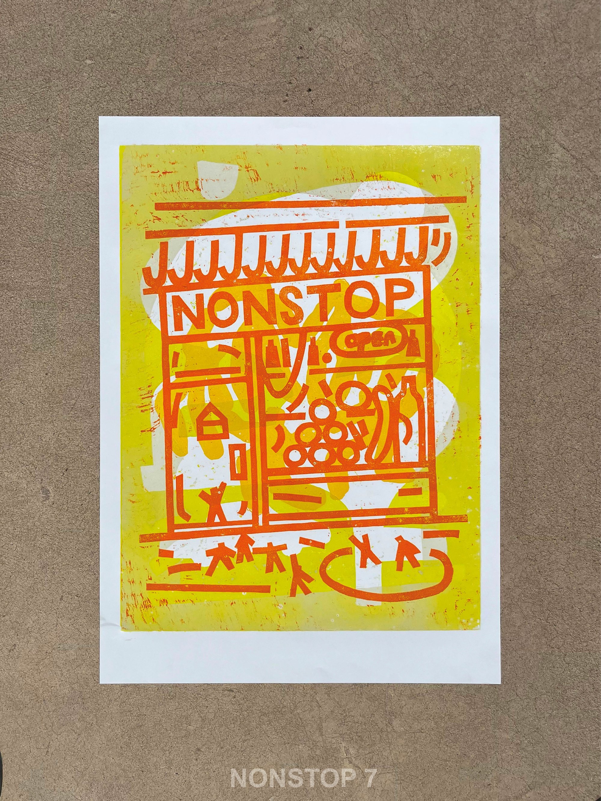 série grafických tisků nesoucí název „24Hrs„ vznikla neřízenou kombinací matric a barev = výsledkem je 64 variant tisků, co kus to jedinečná varianta, která existuje pouze v 1ks